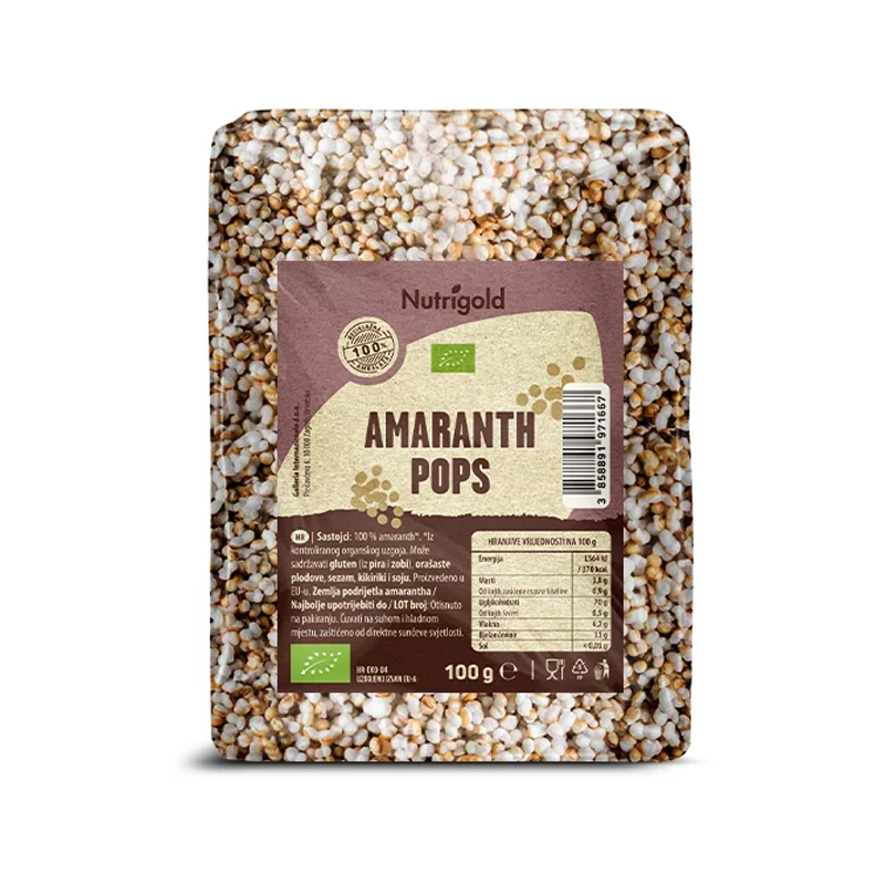 Nutrigold predstavlja dragocjenu namirnicu u novom ruhu - ekspandirani amarant ili amarant pops koji nastaje minimalnom obradom zrna u stroju pod visokim pritiskom čime se dobiva neodoljiva namirnica pahuljaste strukture.
